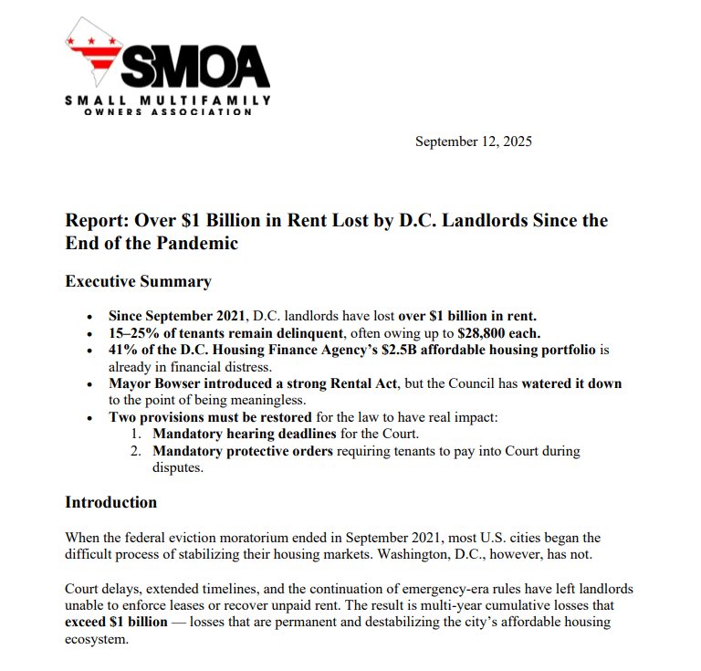 Report: Over $1 Billion in Rent Lost by D.C. Landlords Since the End of the Pandemic